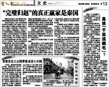 本文摘自《老人报》2012年10月10日第A13版,作者:郭灿金,原题:“完璧归赵”的真正赢家是秦国