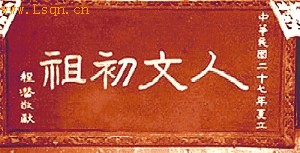 位于陕西省黄帝陵内、由程潜题写的“人文初祖[注: 名称 陕西黄陵县桥山上有一座黄帝陵,被誉为中华民族的“人文初祖”。每逢清明节,都有不少海内外的炎黄子孙前去祭拜。 典故 大约在4000多年以前,以黄帝为首领的部落,住在中国西北部的姬水附近。]”匾额。