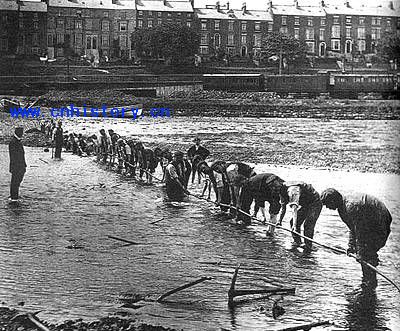 1910年,工人们把第一条海底电缆放进惠特比的艾斯克河中。这些人似乎弯下他们健壮的身躯向前面的人在鞠躬,这有点像封建时代的领主与佣人之间的关系。这仅是画面本身带来的误会,事实上,当时的美国工人一般来说比他们在世界其它地方的同行拥有更多的权利。而他们安装的电缆,也正在开创一个时代,一个从早期工业化到现代工业的时代。