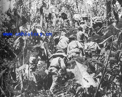美军在丛林中搜索山本五十六的飞机残骸