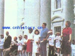 里根总统和夫人、女儿等在白宫前参加了这次全国性的募捐活动。 ..