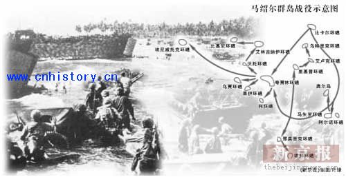 美海军陆战队队员吉姆·里德与战友5天内转战3岛 马绍尔群岛战役示意图 《新京报》制图/叶绿
