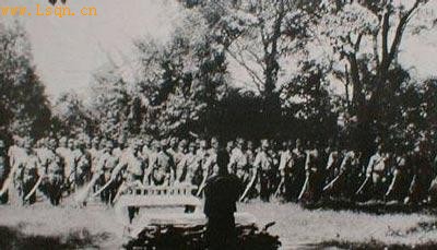 日军败亡前由部队长亲自把军旗放入奉烧台安置,然后全部队官兵向军旗致敬。
