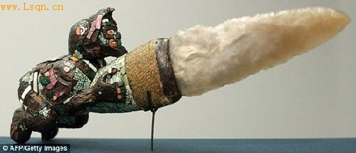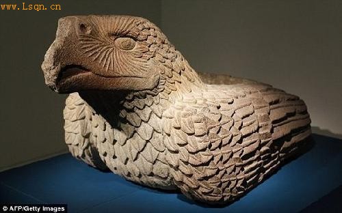 图:这个石质巨鹰雕像的年代可以追溯到1502年,在它的背部有一个圆形小孔,用于盛放祭祀品的心脏
