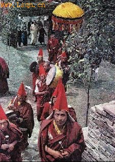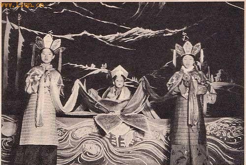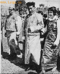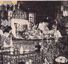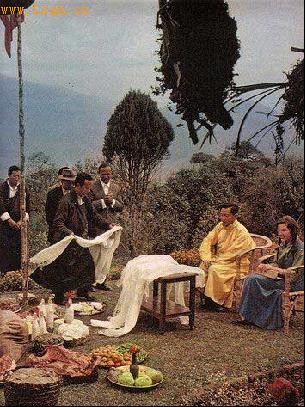 锡金末代国王前妻有三个孩子,一个是丹增王子,一个是旺秋王子,一个是央珍公主。图片上显示的是丹增王子,两边是侍女。