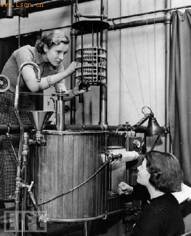 这是在1936 - 1937年流行性传染病期间,两位英国物理实验室的工作人员正在在测试温度计。