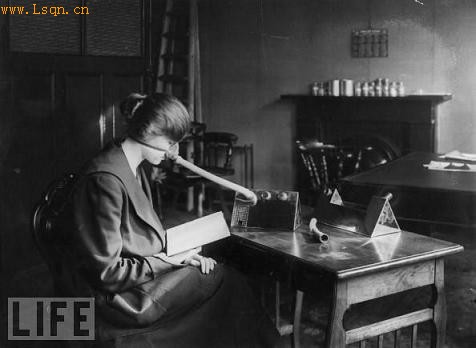 紧跟第一次世界大战而来的"西班牙流感"中,一位病人正戴最新式的防流感面具。