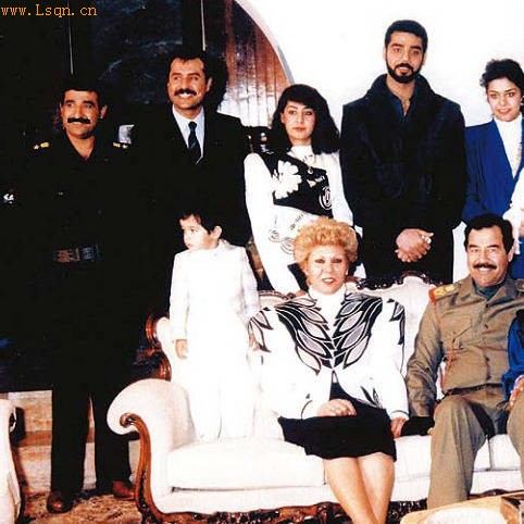 图为拍摄于1988年的萨达姆全家照。坐在沙发中间的是萨达姆夫妇,后排男子为萨达姆女婿,后排抱小孩者就是拉加德。如今,照片里的男性都已不在人世,女性则流落各地。