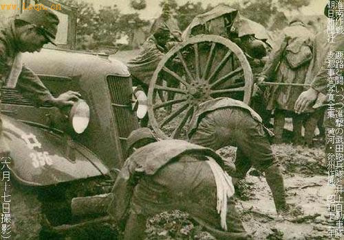 雨季泥泞的道路使日军汽车兵和辎重部队叫苦连天,一筹莫展。(来源:资料图)