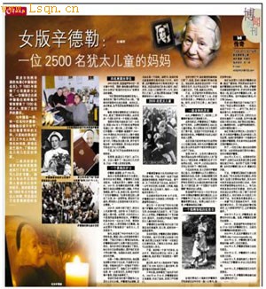 本文摘自《羊城晚报》2010年10月30日B06版,作者:杨琦,原题:《女版辛德勒:一位2500名犹太儿童的妈妈》