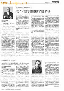 本文来源:《青年参考》2012年5月30日第40版,作者:[美]Colin Powell,译者:缪小析,原题:《美国前国务卿[注: 国务卿state,secretary of 国务院的行政首长。美国的国务院在联邦政府各部中居首位。建立初期,除负责对外事务外,还兼管领地、保管国家文献,与联邦法院联系等一些内政。]鲍威尔:我在任职期间犯了很多错》
