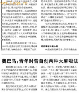 本文摘自《长江日报》2012年7月5日第8版 作者:佚名 原题为:《奥巴马:青年时曾自创两种大麻吸法》