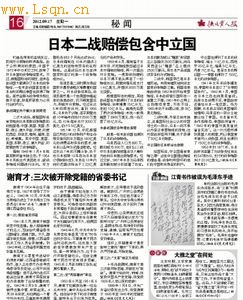 本文来源:《快乐老人报》2012年9月17日第16版,作者:快乐老人报,原题:《日本二战赔偿包含中立国》