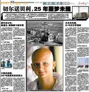 今年4月26日是切尔诺贝利核电站核事故发生25周年的日子,一系列[注: 一系列 拼音: 解释: 1.犹言一连串。-yixilie]的纪念会议从19日就已经开始展开。wwW.LSqN.cN而当年随风飘散的污染物至今仍遗留在世界各地,其放射危险性仍将持续很多年。对于那些正遭受病痛折磨的受害者来说,切尔诺贝利核事故或许是“一场终生都无法扑灭的大火”。