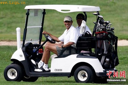 (当地时间12月28日,美国总统奥巴马在夏威夷度假。他在高尔夫球场上不但打球,还充当起了司机大秀了一把车技。图片来源:中新网)