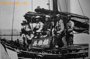 color=#000080>1950年4月16日,野战军主力发动大规模渡海作战,图为打败敌舰被授予英雄船的勇士们。来源:扬子晚报