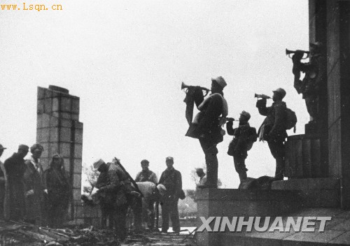 宋_GB2312 color=#000080> 1948年11月2日,解放战争三大战役之一的辽沈战役胜利结束。辽沈战役历时52天,共歼灭国民党军47万余人,东北全境获得解放。这是我司号员吹响胜利的号角。 新华社发