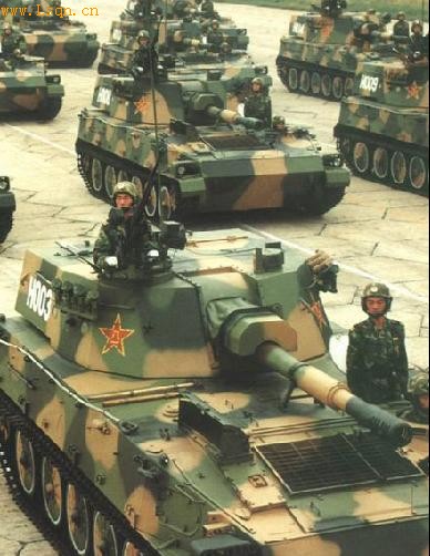 资料图:国庆50周年大阅兵参阅履带式122毫米自行榴弹炮方队
