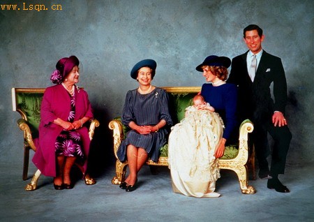左一为王太后,左二是女王,左三是王妃戴安娜,右一是王储
