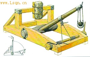 公元4世纪欧洲军队使用的投石机,从中可以看出早期罗马投石机的一些痕迹。