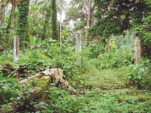 掩映在丛林中的破旧军人墓碑