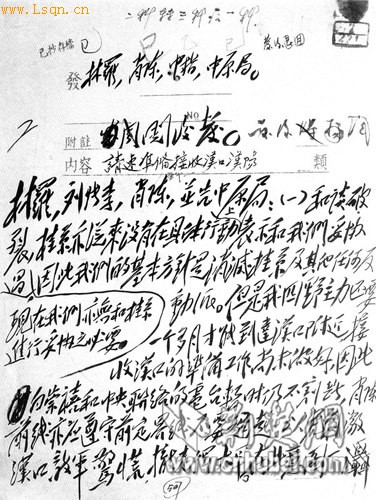 武汉是1949年5月解放的,但从此次披露的电报手稿影印件来看,早在2月12日,毛泽东即为中央军委起草了给四野司令员林彪、政委罗荣桓等人的电报,命令四野先出两个军迫近汉口钳制白崇禧部,使其不能向东增援以妨碍中野、华野渡江。3月17日又电令四野主力应于4月1日前完成出发准备。