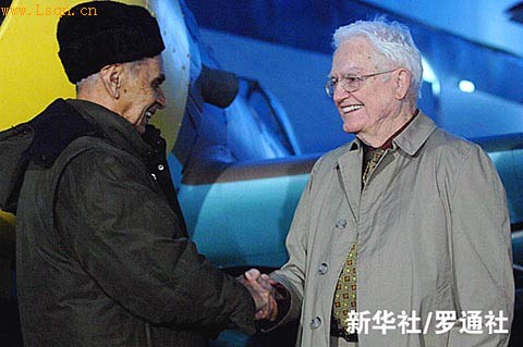 新华网布加勒斯特1月23日电 (记者林惠芬)曾在第二次世界大战一场空战中交锋的罗马尼亚飞行员多布兰和美国飞行员戴维斯23日在布加勒斯特国家航空博物馆重逢。66年前曾经有过生死较量的两位老人重逢时激动万分,他们相互拥抱,交换礼物。