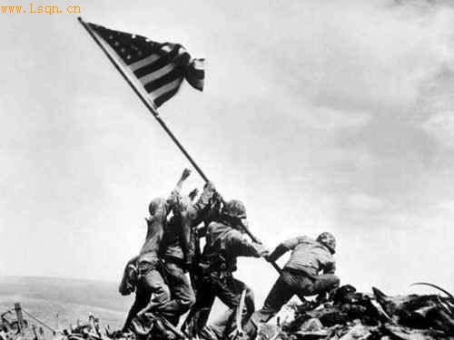 1945年2月23日上午12点15分,一面美国国旗插上硫磺岛的斯利伯奇峰,这张照片后来被当作美国的“国家圣像”珍藏于华盛顿。