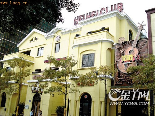 位于广州市沿江中路239号、天字码头斜对面的“黄埔军校同学会旧址”,如今已被粉刷成米黄色,门口悬挂着一把两三米高的吉他模型,门楣上写着HEIHEICLUB。酒吧的主人还在窗口玻璃上贴了一幅巨大的广告词,上面写着“新贵潮人夜蒲首选之地”,标明了这幢楼的新用途。至于何为“新贵”、何为“夜蒲”,假如黄埔诸生泉下有知,也无法理解。