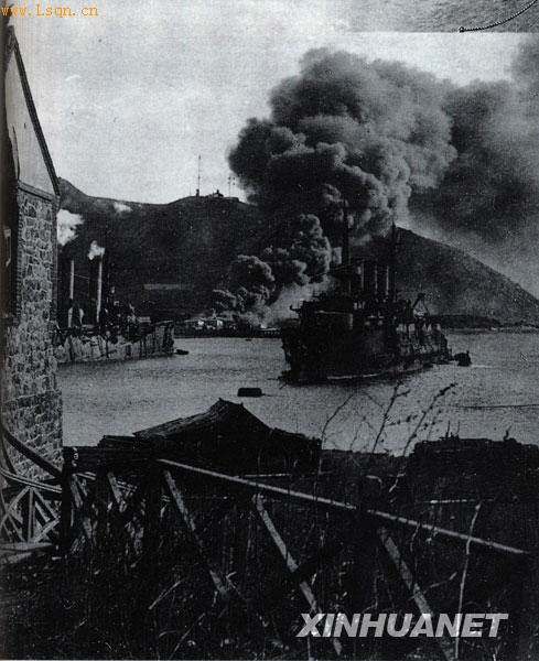 这是1904年12月6日,在中国旅顺港中弹的俄国军舰。 新华社 发