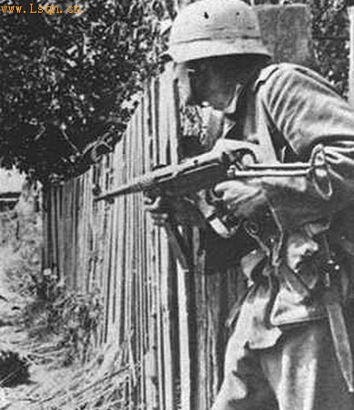二战期间手持MP-40冲锋枪的德军士兵