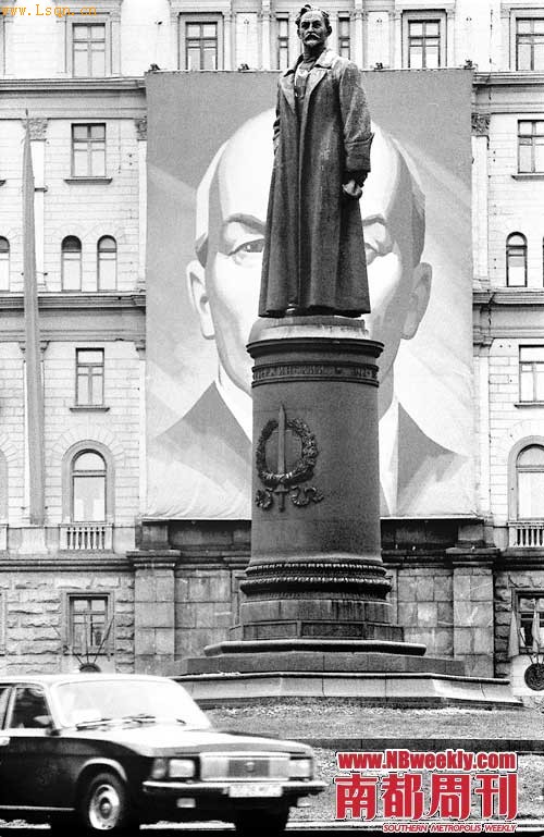 1990年,克格勃前身“契卡”的创始人捷尔任斯基的雕像伫立在克格勃总部大楼前。