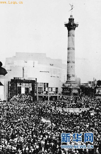 1789年7月14日,巴黎人民起义,攻占了象征封建统治的巴士底狱,法国资产阶级大革命爆发。1880年7月6日,第三共和国颁布法令,定7月14日为法国国庆节。这是1989年7月13日,成千上万的巴黎市民和旅游者云集在巴士底狱遗址,庆祝法国大革命200周年。新华社发