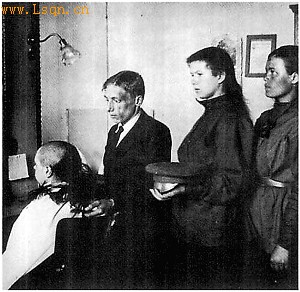 妇女营士兵在剃光头 图片来源:北京晚报