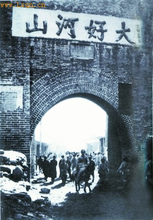 1948年11月29日,平津战役开始。12月24日,人民解放军解放了张家口。此照片反映的是我军进入大境门的情景。