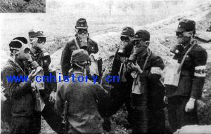 1938年5月,在津浦线兖州附近的日本军队进行毒气战准备