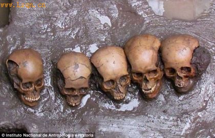 这些头骨的时间可追溯至公元600到公元850年。科学家在一个距墨西哥城数英里的地方发现了它们。这些研究人员说他们的发现可能改变科学家现在对该地区古老文明的看法。美国佐治亚州立大学的克里斯多夫-摩尔哈特表示:“毫无疑问,我们在该地区发现古老中美洲最大规模活人献祭的潜在证据。”