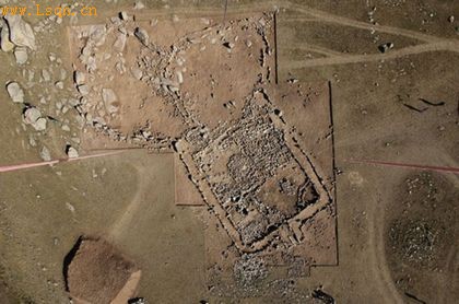 米。F1的石墙基本由竖立的大石块组成,石块高出地表0.3~1.0米。个别的大石块(材)为人工修整而成;最长的一块长近3米,露出地表1.1米余。房址内遗迹呈中轴对称分布,基本可以划分出四个单元,显示出了不同的功能分区意义。在房址内的东南角和西南角,各有一个独立的四分之一圆形状的石圈(东南角为双圈)遗迹。分别出土了零星的家畜的骨骼和陶片,以及纯净的灰土。在F1的中部,由大石块组成的双道石围(墙)将房址分为前后两部分,石围(墙)与南墙平行。在后半部的中间也有两条南北向的石围将其纵向分开,形成东北部和西北部两部分。东北部内堆积的石块基本为南北成排分布,部分保存有相同走向、上下叠压的二~三层的石块堆积。西北部的石堆主要部分呈圆形,大部分为单层堆积。在房址内的其它位置,还有零散的石块堆积。F1的北部东西两端各有一间向北突出的长方形范围,东西对称。西北角上的长方形范围内,也保存有成排的石块。此外,F1内存在数座窖穴。