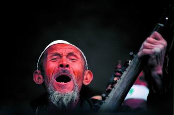 今他们的很多历史都淡漠漫散了,只留下一个名字:“刀郎人”。 被刀郎木卡姆撞到了心 作家王蒙说他永远忘不了第一次听到刀郎木卡姆时所受到的冲击和震撼。 1964年被“流放”到新疆的王蒙来到叶尔羌河畔的麦盖提县,早晨8点,他就听到了两个年轻女人的大声歌唱,她们一边干活,一边唱,那歌声就像“呐喊一样”,“响亮、多情、急切、期待回应”,“又像是一种挑战,放肆地发泄,自唱自调,如入无人之境”,她们整整唱了一个上午,中午稍稍歇息,下午又一直唱到太阳快要落山。 向联合国申报非物质文化遗产的《申报书》中,对刀郎木卡姆的描绘用了“野性”这个词。 它是野性的。中国艺术研究院研究员田青说,刀郎木卡姆是音乐家驾驭不了的音乐。它既不是中国音乐的五声音阶,也不是西方的十二平均律。它的节奏变化多端,存在大量的中立音。中立音是“钢琴黑白键缝里的音”,音乐家的耳朵能听得出来,但只有经过严格训练的人才能将它唱准。 没有人能够唱那么高的音,没有人掌握住那么多细微的变化,更没有人能够控制住情感一泻千里的溃决。 刀郎木卡姆所有套曲都是由苍老的男声呼唤开始。一行十多人跪在沙地上,所用的乐器都保持静默,一个沙哑的声音开始起调,那声音端直着向云端爬升、再爬升……连续十二个呼唤后才放声唱出: 情人啊,你是来把我瞧瞧 还是来把我烧烤? 莫不是要让熄灭的情火 又在我心田里熊熊燃烧? 凡是听到刀郎木卡姆的人都会有一种受突如其来的撞击的感觉。音乐的无形无影无踪竟然能让人受伤。“怦然心动”,这个词用在这里最合适,刀郎木卡姆能撞到人的内心深处。 四亿人的歌舞盛宴 木卡姆不仅是刀郎人的,也不仅仅是新疆的、中国的。 从中国新疆最东面的哈密地区到摩洛哥的塔尔法亚,在东西长达12000公里的范围内,19个伊斯兰国家的4亿多人享有这一文化盛宴。如果用一条红线将这些地点连接起来,就是一条和丝绸之路完全吻合的道路。 丝绸之路是一条物质交流之路,又是一条音乐之路。今天的木卡姆是这条音乐之路的最好见证。一个绿洲到一个绿洲,一个国家到另一个国家,一段行程到另一段行程,一个又一个民族在同一格式里填加了自己的色彩,每一次传递,既是一次继承,又是一次创造。 在中国之前,伊拉克的《伊拉克木卡姆》、阿塞拜疆的《阿塞拜疆木卡姆》、塔吉克斯坦、乌兹别克斯坦的《沙土木卡姆》已经申请并分别列入了联合国“人类口头和非物质遗产代表作”。中国新疆维吾尔木卡姆因其多样性、综合性、完整性、民众性而再次被列入。 现代维吾尔语中,木卡姆一词的主要意思是指“大型套曲”,同时还有法则、规范之意。“维吾尔木卡姆艺术”,是对流传在新疆的木卡姆文化的一种涵盖方式。在这个大框架下,有十二木卡姆、刀郎木卡姆、吐鲁番木卡姆和哈密木卡姆。它们是流行在各个地区的木卡姆。 24小时的长歌 如果说流行在刀郎地区的刀郎木卡姆是最原汁原味的民间“俗乐”,流行在喀什地区的十二木卡姆,就是经过宫廷淘洗的“雅乐”。 十二木卡姆是由十二个大型的套曲组成的,每一个套曲都包括“琼乃额曼”、“达斯坦”、“麦西热甫”三部分。 第一部分“琼乃额曼”是大曲之意。1980年代,研究十二木卡姆的人们发现,一部名为“阿比倩希曼”(意为泪水、眼泪)的套曲中的琼乃额曼部分,竟然包括了39种曲调、填有244首古典诗歌。 第二部分“达斯坦”是叙事歌曲、器乐曲。如果“琼乃额曼”是用音乐进行心灵的咏唱,那么“达斯坦”就是用音乐来讲故事。凄美的爱情故事;悲壮的英雄故事;离奇的民间传说。 第三部分“麦西热甫”是属于田野果园集市的,它是“欢乐颂”,是“狂欢节”,是舞蹈的精灵。成千上万的人随着“麦西热甫”旋动肢体,佝偻的身躯在一瞬间灵动。 风、雅、颂,这是孔子整理的《诗经》的结构,可以想象当年的“关关雎鸠,在河之洲”且舞且唱的情景,一定和今天的十二木卡姆的歌、舞、乐有神通之处。宫廷之雅,家国之风,民间之谣,如此结构宏大的十二木卡姆演唱下来,需要24小时的时间。 据说十二木卡姆是公元16世纪莎车王的妃子阿曼尼莎汗收集整理的,阿曼尼莎汗的家乡就在现在刀郎人居住的刀郎河边。 我们现在知道的十二木卡姆是1951年一个叫吐尔迪阿洪的木卡姆老艺人唱的。一名叫万书桐的汉族音乐家,用一台美军留下的处理品——老式钢丝录音机,把这流传了千年的恢宏的音乐作品捉住并保留了下来。5年之后,吐尔迪阿洪就去世了。从此世界上再也没有人能够完整地演唱这24小时的“长歌”了。尽管现在有了非常先进的科技手段,人们也想尽办法培养后辈,但到目前为止,还是没有一个人可以完整地演奏(唱)十二木卡姆。 刀郎人为什么要这样唱 刀郎人为什么要这样唱木卡姆?一个乐队,谁能将高音唱上去并让一口气持久地保持在高音区域徘徊,谁就可以作为乐队的主唱。很多刀郎人因为唱歌而眼睛突出或者得疝气不得不进行手术。 “木卡姆是刀郎人的皇冠,没有木卡姆就等于没有了生命。”刀郎人热合木·卡得尔说。“以前刀郎人在荒漠中打猎,他将猎物的皮蒙在掏空的胡杨树干上,将动物的肠子做成琴弦,他们发现音乐可以用来歌唱生命。” 热合木是央塔克乡刀郎木卡姆乐队的达甫鼓手,因为个子矮,人们都叫他矮个子热合木。但跪