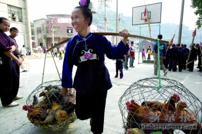 苗年杀鸡宰鸭接待远方的客人。