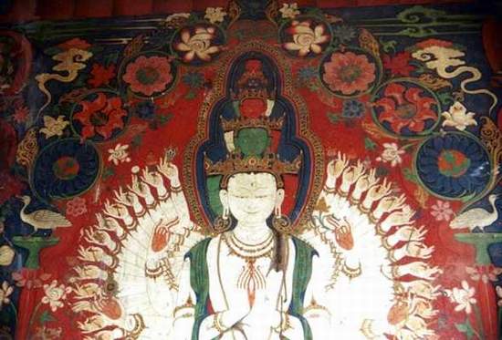 壁画在西藏是一种随处可见的绘画形式。西藏壁画以宗教题材为主,描绘神灵和其他一些精灵,宗教故事等等。在寺院、庙宇、宫殿、私人住宅、工棚、驿站甚至各种档次的客店、户外皆可看到。