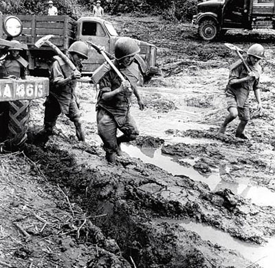 北越战士要经常与泥泞的路面斗争