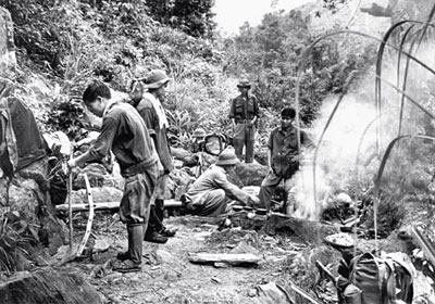 越南人民军战士在胡志明小道上埋锅造饭