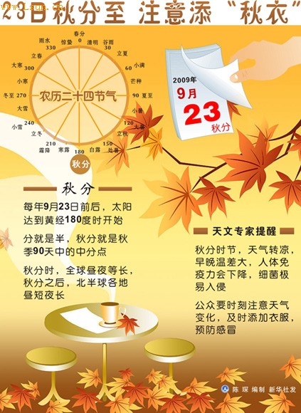 图表:23日秋分至 注意添“秋衣” 新华社发