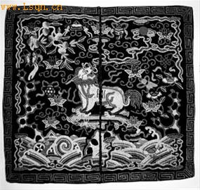 清都察院官员所用藏青缎打籽绣獬豸纹补子。