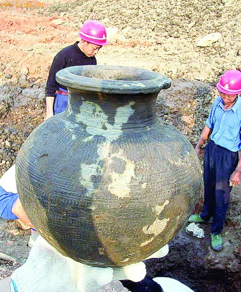 高都司巷工地出土的先秦陶罐。摄影/郭建政
