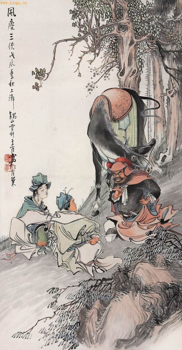 王鹤 戊辰(1928)年作 风尘三侠 立轴