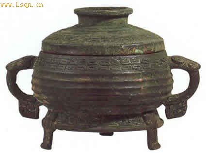 西周晚期 元年师兑簋 通高22.5、口径19厘米,重4.82公斤。 敛口鼓腹,一对兽首双耳,下有方垂珥,圈足下有三个向外撇的兽面扁足,隆起的盖上有圈状捉手,盖沿下折。盖上和器腹饰瓦沟纹和双行重环纹,圈足饰单行重环纹。 盖、器同铭,各91字(其中重文2)。 元年师兑簋铭【铭文】隹(唯)元年五月初吉甲寅, 王才(在)周,各(格)康庙,即立(位), 同中右(仲佑)师兑入门立□(中)廷, 王乎(呼)内史尹册令(命)师兑:
