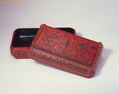 此盒造型端庄大方,比例适度,边角破直线为曲线,富于变化,为万历朝首创。装饰内容为传统的吉祥图案,纹理清晰,填饰细腻。色彩以红、黄、赭、绿、黑等色组合,沉稳和谐。器表光滑,磨制精细。此盒具有显著的宫廷特色,为万历时期代表作品。