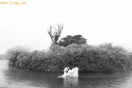 日月潭边的邵族是台湾人口最少的族群,只有不到六百人,据传,邵族人祖先原在阿里山中,后追逐白鹿到日月潭,见这里风景优美,资源丰富,就定居了下来,图为日月潭中的白鹿塑像。